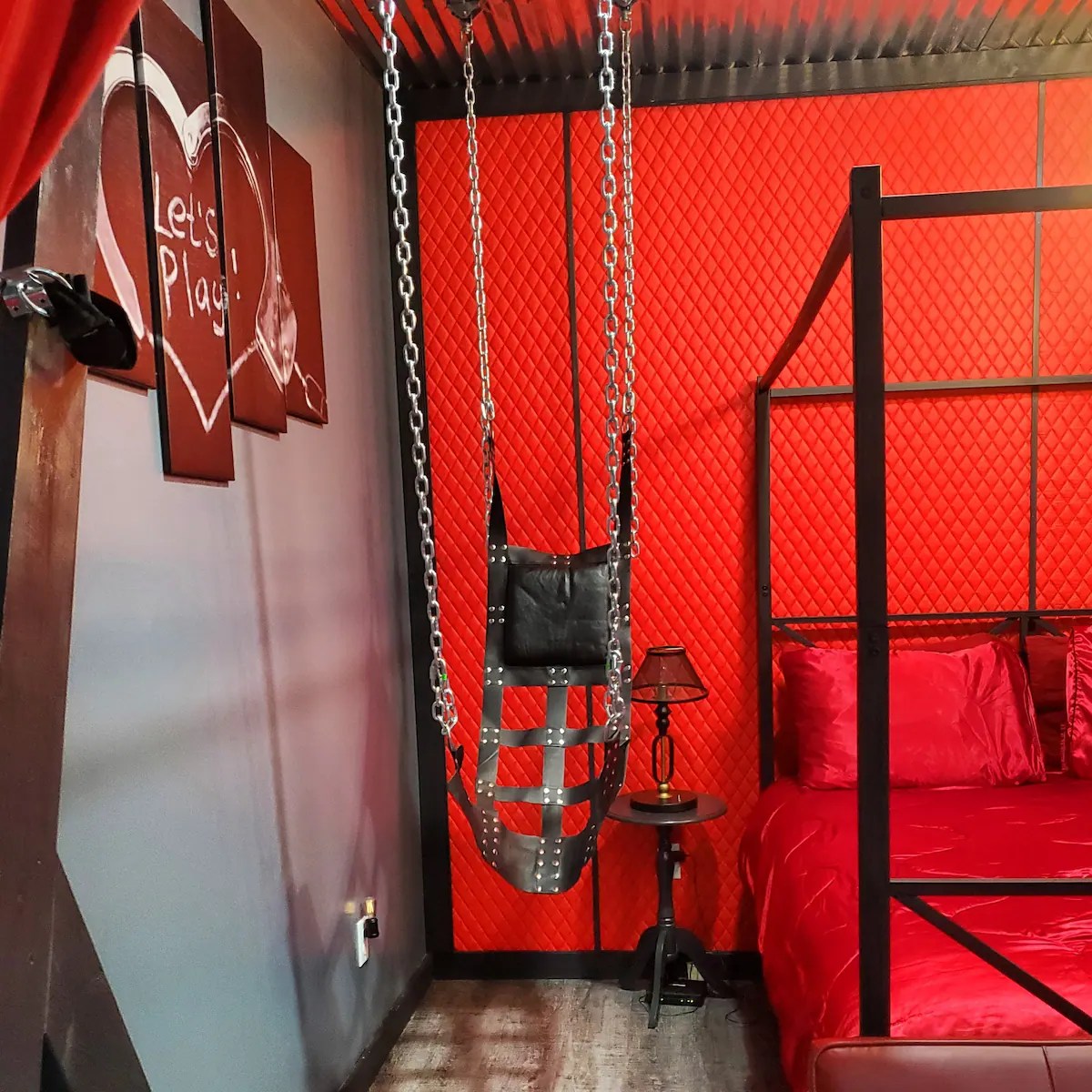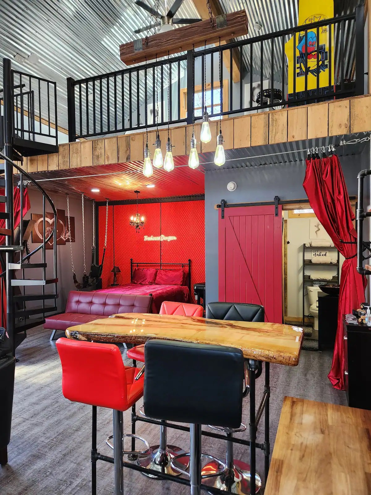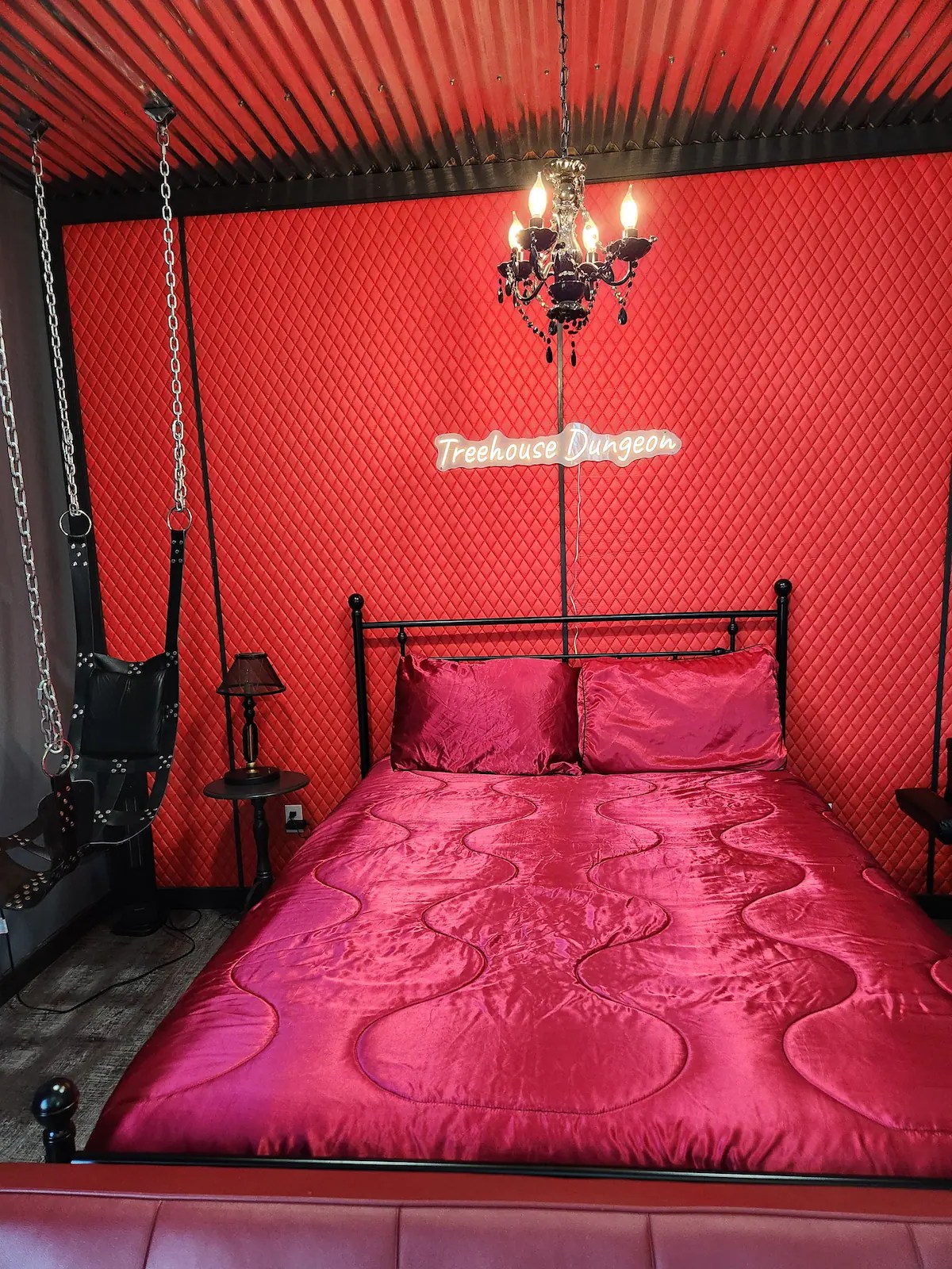 Red room cabins TM is the first adult themed vacation. We offer a unique Romantic “Red Room” experience for couples looking for some spice and indulge in new desires. The cabin is curated for consenting adults. This two bedroom treehouse is nestled in the mountains of TN. Very private. Come relax and explore new things with your partner and enjoy the Hot Tub with two private decks outside and lots of fun and games inside! You will see why it is so popular! Travel insurance highly recommended!